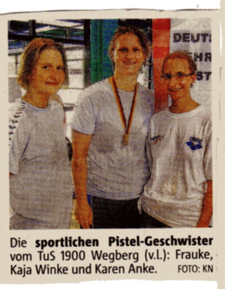 In der Altersklasse W30+ wurde Kaja Winke Hadenfeld (geb. Pistel) erneut Deutsche Meisterin. In der gleichen Alterklasse belegte Karin Frauke Fink-Pistel den 4. Rang und Karen Anke Pistel den 5. Rang.
