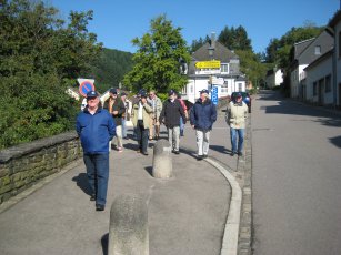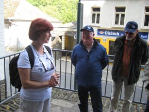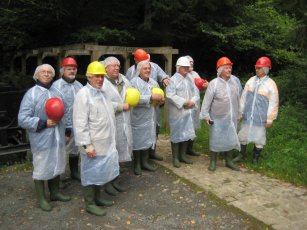 Am Sonntag, den 14.9.2008 war es gegen 10.00 Uhr, nach dem Frühstück wieder soweit und die Rückfahrt begann. Ein weiterer Höhepunkt stand uns aber noch bevor. Über die Stadt Vianden fuhren wir nach Stolzenbourg. Hier stand der Höhepunkt des Tages auf dem Programm. Wir trafen Frau Jeanette Bechthold und erlebten mit ihr eine Führung durch eine Kupfermine. 30 Meter unter der Erde wateten wir 400 Meter durch einen Stollen, 1 Meter hoch, bis zum Hauptschacht. Wir erfuhren so manch wissenswertes über den Kupferabbau und das Leben der Menschen vor vielen Jahrzehnten. Steile Treppen führten uns wieder ans Tageslicht und wir entledigten uns der Stiefel, Socken, Haarnetze, Helme und einem Plastikmantel, den wir alle zum Schutz gegen die Nässen trugen. |