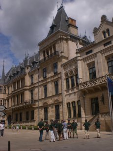 Am Montagmorgen treffen sich alle Oldies wieder gut gelaunt am Frühstücksbuffet. Es wird noch einmal kräftig zugelangt, anschließend die Koffer gepackt und verladen und dann geht es über die Höhen von Saar und Mosel nach Luxemburg. Dabei überqueren wir die Mosel und erinnern uns an unsere Tour vor 2 Jahren, als wir, damals leider bei Regen, diesen Streckenabschnitt mit dem Schiff befahren haben. |